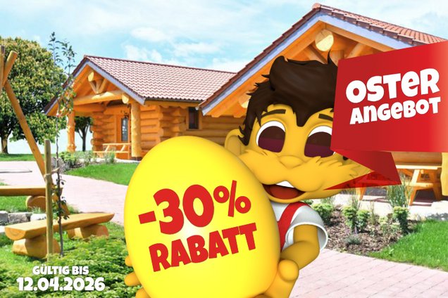 Übernachten Sie in einem von sechs gemütlichen Blockhäusern für bis zu fünf Personen, nur drei Gehminuten vom Schwaben Park entfernt!